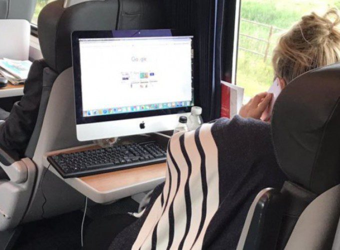 Virgin Trains East Coast passengers were shocked last week to see that a fellow commuter had turned her First Class seat on a train into an office by installing a large iMac. The unnamed heroine took full advantage of the onboard Wi-Fi for a productive commute.