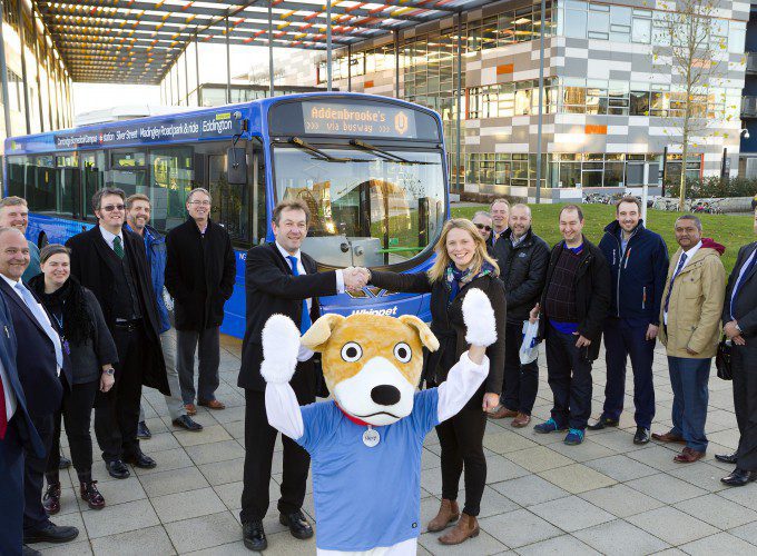 The bus, branded ‘The University bus for everyone’ will connect the North West Cambridge Development, Eddington, with the railway station and key places of work and study for University staff and students. Eddington has been built to alleviate the housing shortage in Cambridge, and the provision of a bus route and cycleway seeks to offset the anticipated increase in road traffic.